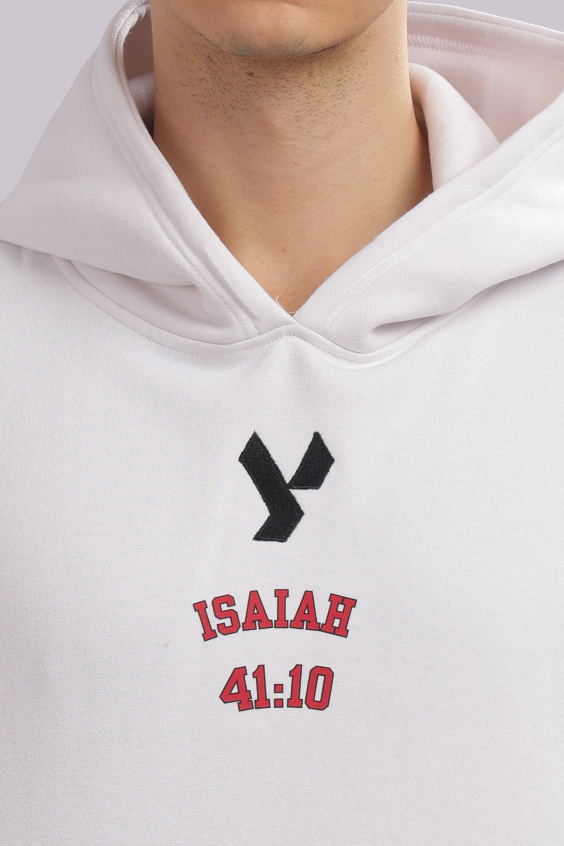 The Isaiah 41:10 White Hoodie blends clean minimalism with a soft, confident edge. Pastel pink text brings a calm pop of color — subtle, yet strong — echoing the verse’s promise: